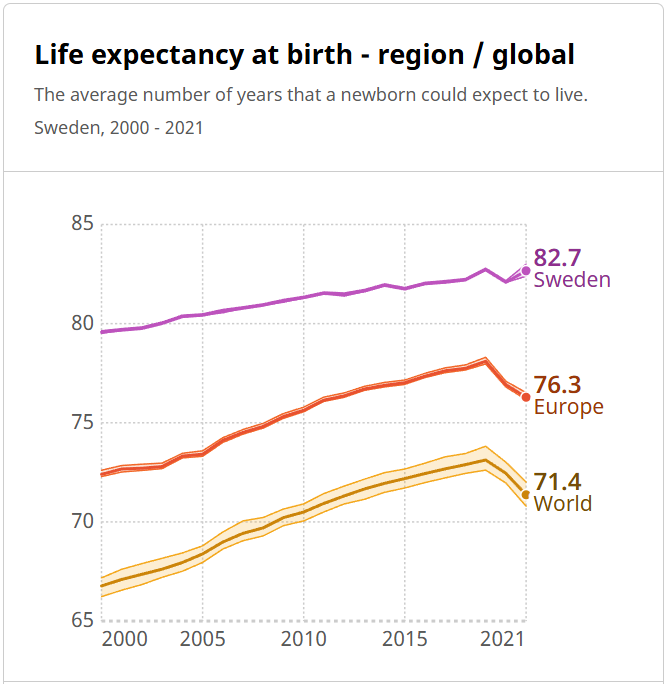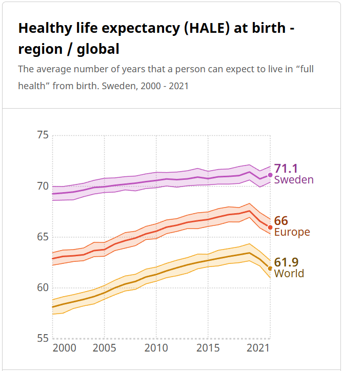 Healthy life expectancy is increasing in Sweden. That’s real progress, not just movement in GDP by a percentage point or a budget surplus. It’s about real improvement to people’s lives.